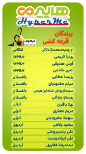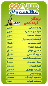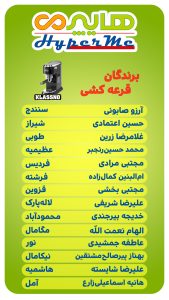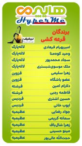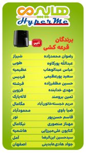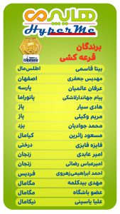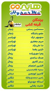 ضمن تشکر از استقبال پرشور شما عزیزان، به آگاهی می‌رسانیم که برندگان خوش‌شانس این دوره مشخص شده‌اند و اسامی آنان در ادامه منتشر شده است.